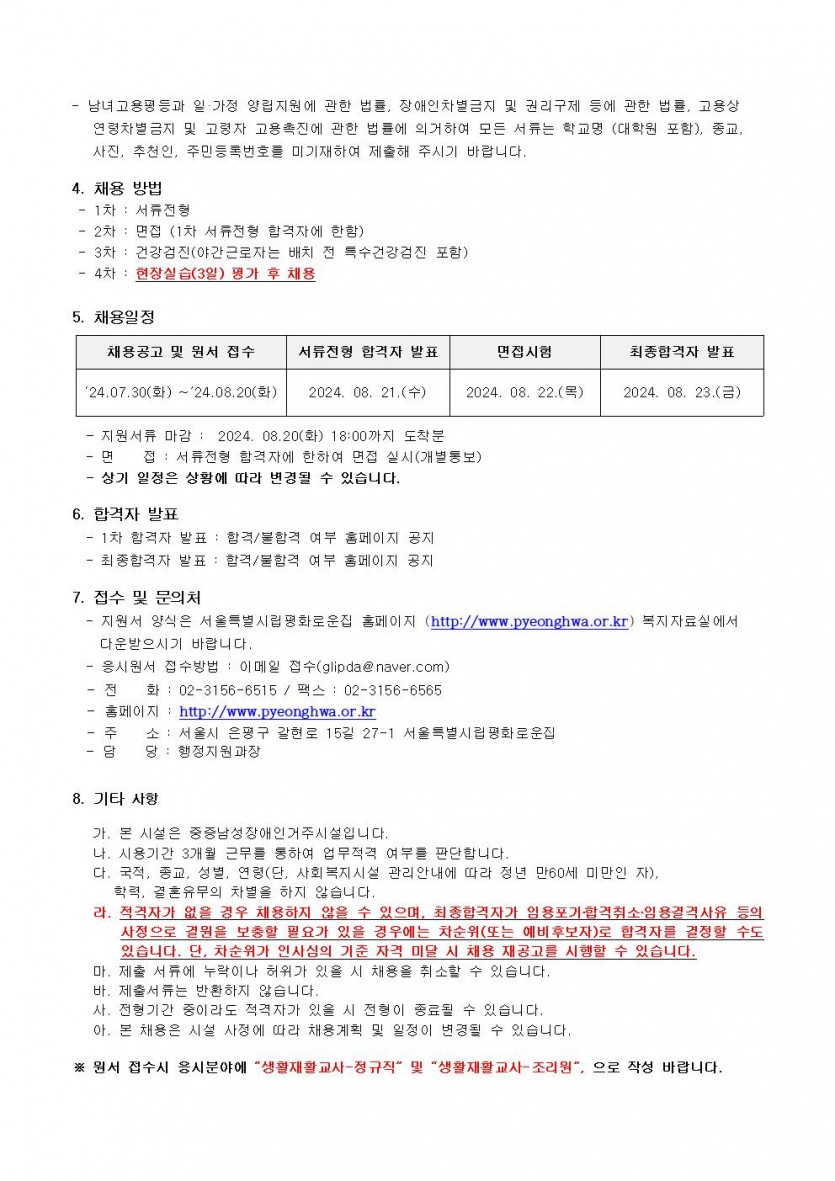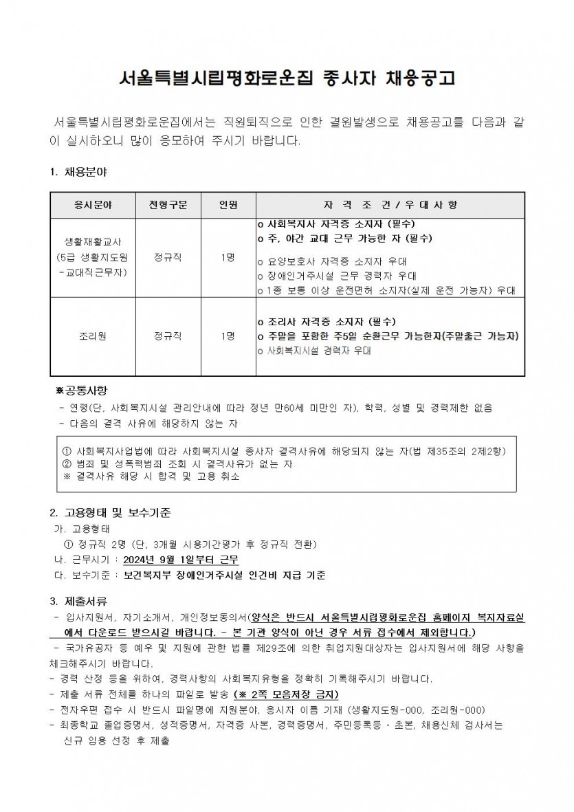 2024년 제8차 종사자채용 모집공고 페이지 정보 작성자 한동주 작성일 24-07-30 18:02 조회 18,387회 댓글 0건 첨부파일 파일 시립평화로운집 입사지원서이력서,자기소개서및개인정보동의서.hwp (22.5K) 178회 다운로드 DATE : 2024-07-30 18:02:25 본문 이전글 다음글 목록 답변