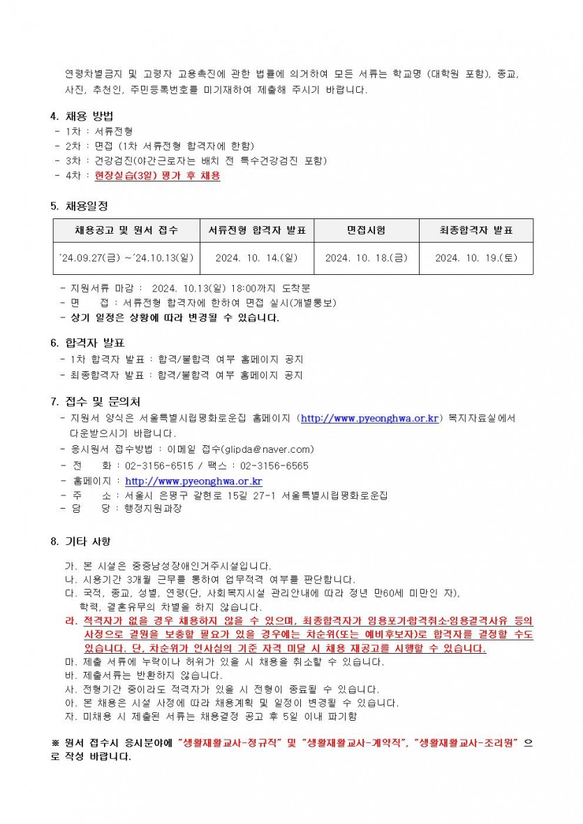 평화로운집 제10차 직원채용공고 페이지 정보 작성자 한동주 작성일 24-09-27 17:36 조회 17,518회 댓글 0건 첨부파일 파일 2024년-생활지도원 10월.hwp (36.5K) 108회 다운로드 DATE : 2024-09-27 17:36:34 파일 시립평화로운집 입사지원서이력서,자기소개서및개인정보동의서.hwp (22.5K) 80회 다운로드 DATE : 2024-09-27 17:36:34 본문 이전글 다음글 목록 답변