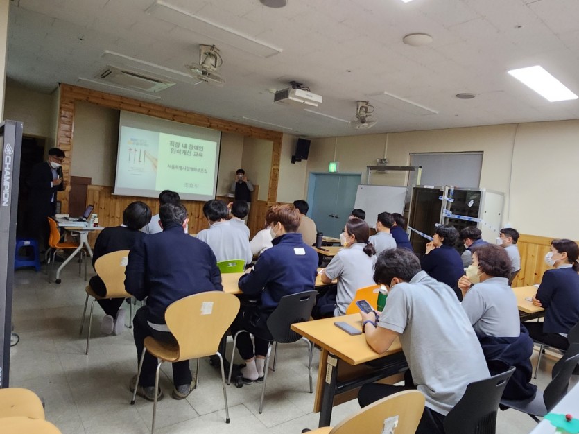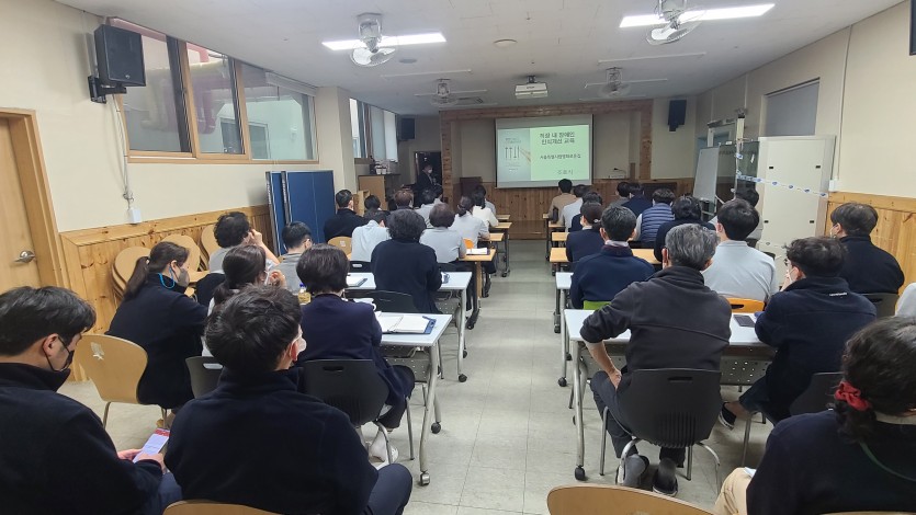 공지 | 장애인 인식 개선 교육 페이지 정보 작성자 장설궁 작성일 23-03-17 15:47 조회 7,789회 댓글 0건 본문 장애감수성을 키우고 장애공감문화 조성과 장애유무를 떠나 "우리는 모두 사람이니까" 라는 관점을 통해 포용사회 실현에 기여하기 위한 장애인 인식개선교육을 3월 15일 실시하였습니다. 열강을 해주신 조효식, 장양숙 강사님과 경청해주신 선생님들 감사합니다. 이전글 다음글 목록
