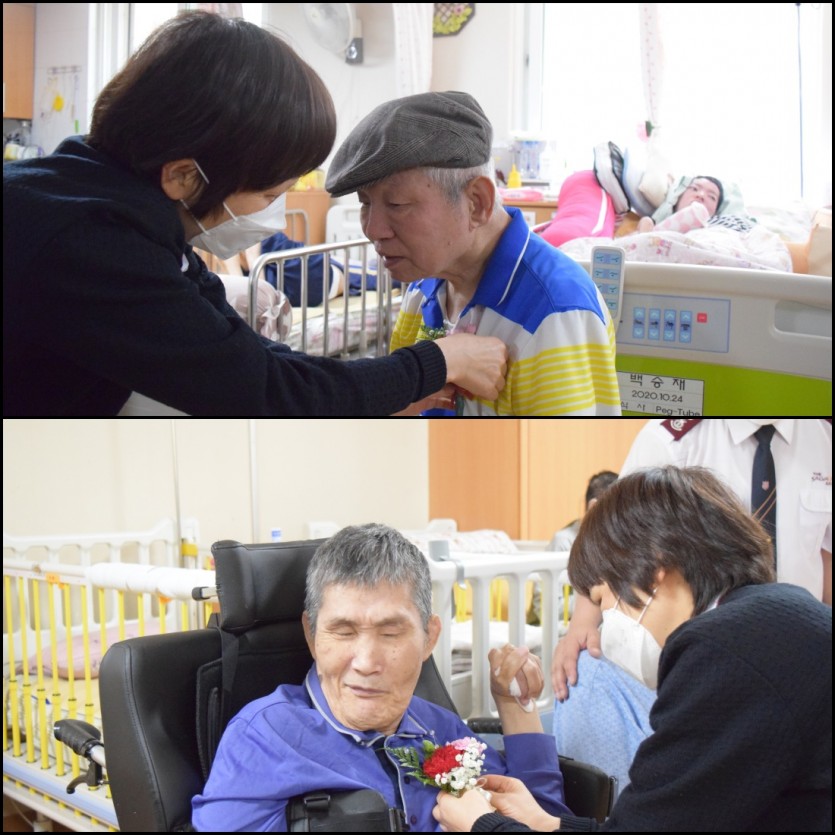 거주인 이야기 | 2023년 5월 8일 어버이날 행사 페이지 정보 작성자 박성호 작성일 23-05-08 15:11 조회 9,587회 댓글 0건 본문 5월 8일 어버이날을 맞아 시립평화로운집 거주인을 위한 작은 행사를 진행했습니다!60세 이상의 거주인을 대상으로 감사와 공경의 마음을 담아어머님 은혜, 당신은 사랑받기 위해 태어난 사람2곡의 노래를 불러 드리고 가슴에 카네이션을 달아 드렸습니다~경로효친의 전통적 미덕을 기리며 앞으로도 오래오래 함께 뵙기를 기도드리겠습니다.사랑합니다.♡ 이전글 다음글 목록