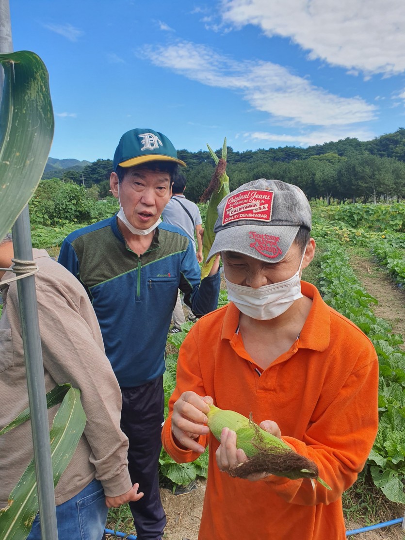 거주인 이야기 | 평화로운학교 농장체험 페이지 정보 작성자 한동주 작성일 21-09-24 11:40 조회 11,770회 댓글 0건 본문 9월 17일 평화로운학교 학생들과 일영에 있는 유기농 체험농장에 다녀왔습니다.옥수수도 따고, 수세미도 따고 올초 병아리였던 닭들이 어미닭이 된 모습도 함께 보는 시간이 있었습니다.직접딴 옥수수는 바로 쪄서 맛있게 먹어보기도 하였습니다. 청명한 날씨와 익어가는 채소들을 보면서 오랜만에 즐거운 활동이었습니다. 이전글 다음글 목록