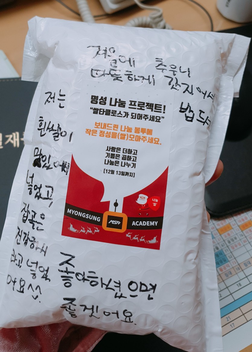 후원자·봉사자 이야기 | 명성체육관 후원물품 전달식 페이지 정보 작성자 박상은 작성일 19-12-30 17:27 조회 13,323회 댓글 0건 본문 매년 연말이면 우리 평화로운집에 따뜻한 나눔을 전하러 오시는 곳이 있습니다.바로 얼마 전 우수자원봉사단체상을 수상한 명성체육관 입니다!명성체육관에 다니는 아이들이 관장님의 마음을 따라나눔을 실천하고자 쌀을 모아주었습니다.아이들이 몇 달동안 함께 모아준 쌀 덕분에평화로운집 가족들은 올 겨울 내내 든든히 지낼 수 있을 것 같습니다^^천사같은 아이들의 손길로 모아진 값진 쌀!진심으로 고마움을 전합니다~♡ 이전글 다음글 목록
