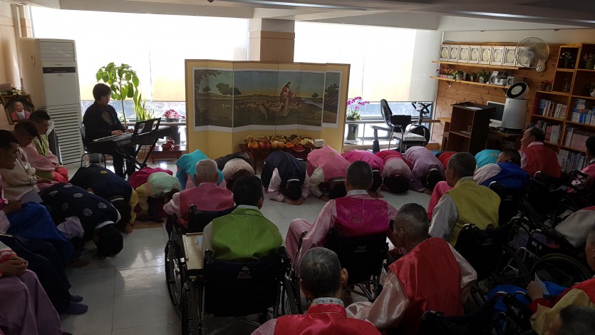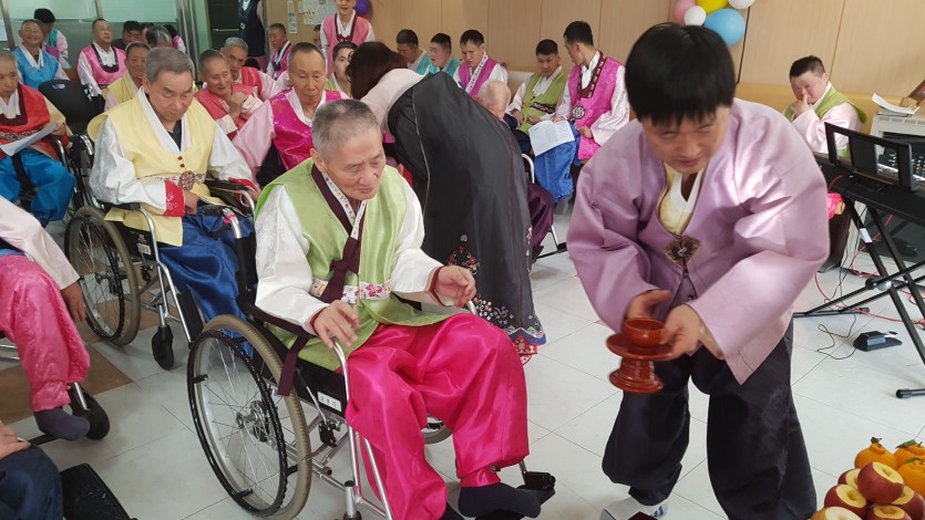 오전에는 차례상을 차리고 직원과 거주인 모두 한복으로단장한 후 조상에게 예를 다하고