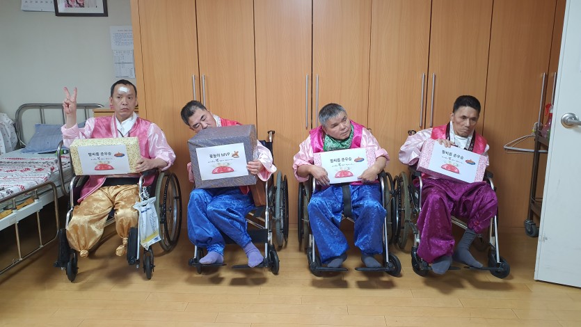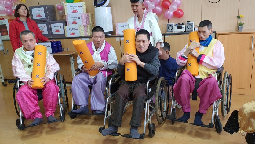 와상 거주인들까지 모두 어울릴 수 있는 윷놀이는 대형 윷을 하나씩 잡고 던지는 행동에 따라