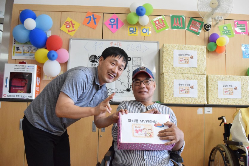 오후에는 팔씨름대회와 윳놀이 대회가 진행되었습니다.