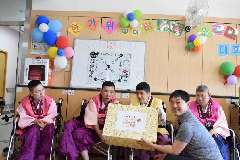 아침부터 거주 장애인뿐 아니라 직원들 모두 한복으로 갈아입고, 추석명절을 맞이하였습니다.