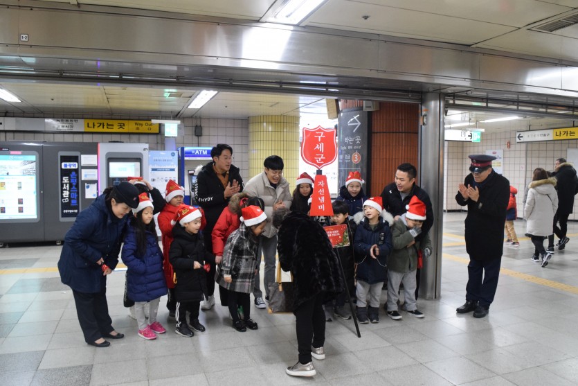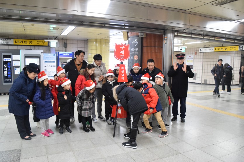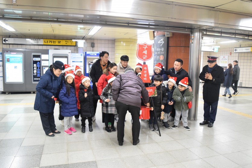 종소리를 울리며 모금을 독려하는 봉사활동을 펼쳐주었습니다