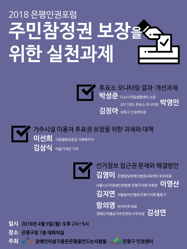 신체적, 정신적 약자들의 참정권 보장을 위한 해결방안은 여전한 과제라는 것을 한번 더 의식할 수 있는 시간이었습니다.