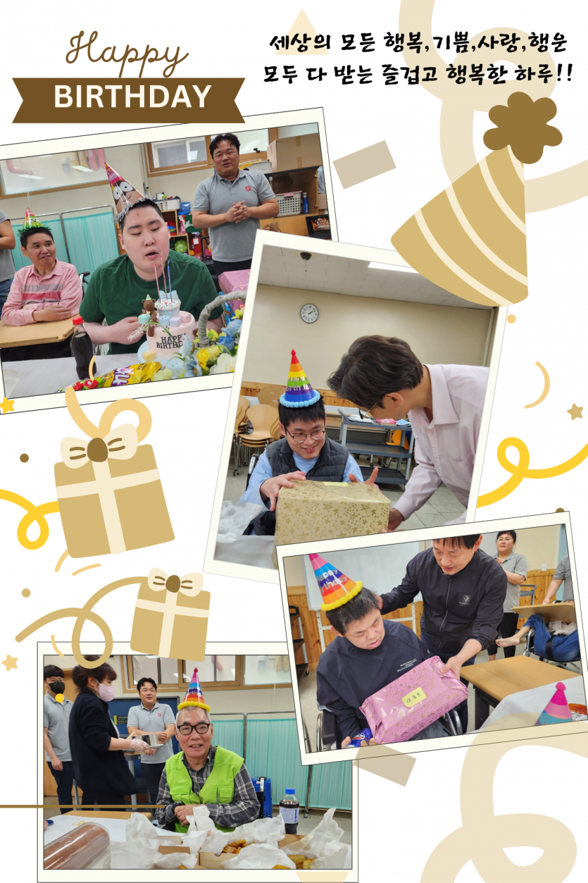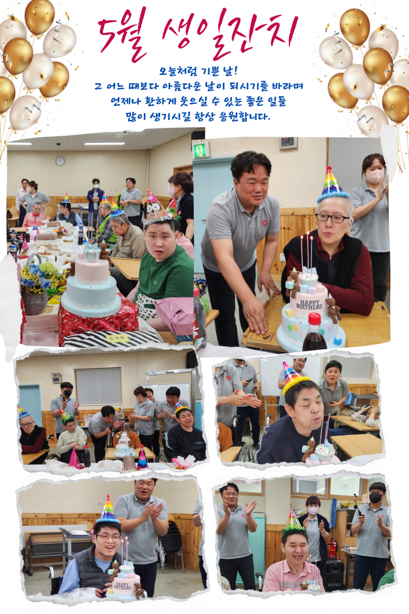 거주인 이야기 | 5월 생신잔치 페이지 정보 작성자 장설궁 작성일 24-05-15 18:05 조회 7,787회 댓글 0건 본문 5월 생신잔치가 13일 치킨과 아이스크림케잌 들로 진행 되었습니다. 당신이 아름다운 이유는 다른 사람들 보다 멋있고 능력있고 매력적이라서가 아닙니다.이 세상에 당신이 존재하기 때문에 당신밖에 없기 때문입니다.생신축하드립니다. 이전글 다음글 목록