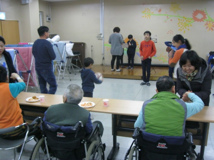 그중 일요일 오는 봉사팀은 초등학교 학생들과 부모입니다.