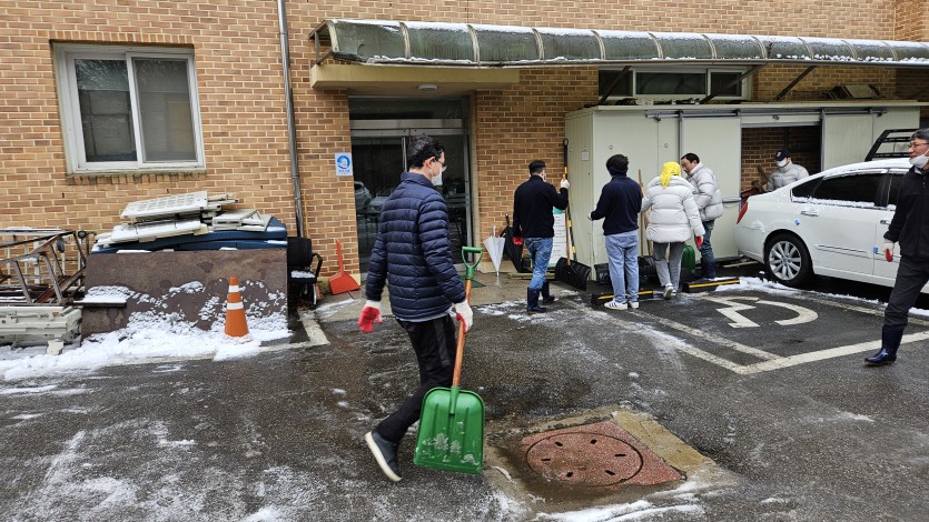 후원자·봉사자 이야기 | 0117 눈오는날 제설작업 페이지 정보 작성자 한동주 작성일 24-01-17 14:04 조회 8,188회 댓글 0건 본문 1월17일 포근한 날씨속에 눈이 내립니다.순식간에 내린 눈이 쌓이기 시작하네요.평화로운집 직원들이 일사분란하게 자향정과 건물 주변의 눈을 치웠습니다. 이전글 다음글 목록