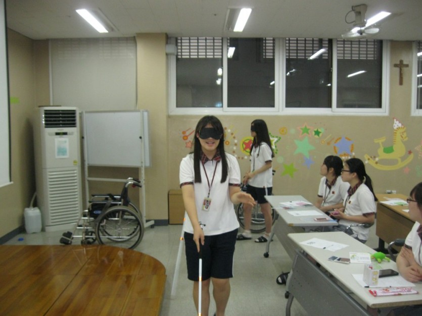 우천으로 인하여 실내에서 인지체험, 휠체어, 시각장애체험등이 이루어졌습니다.