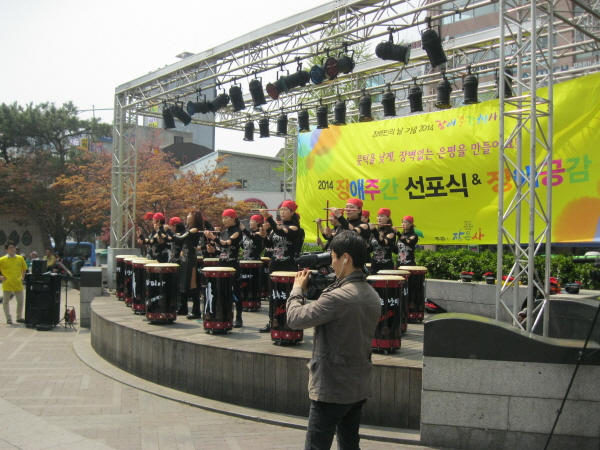 제34회 장애인의 날을 맞아 장애주간행사의 선포식이 연신내역 물빛공원에서 열렸습니다.