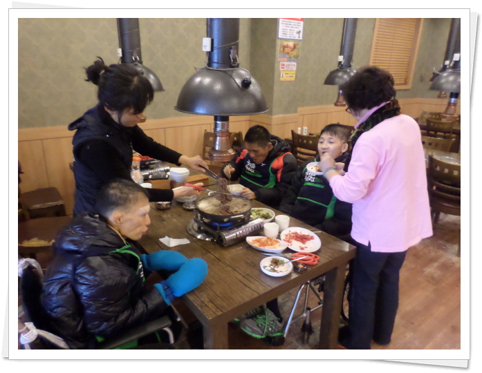 2생활관 기분좋은방 나들이활동 페이지 정보 작성자 이선희 작성일 14-02-18 16:14 조회 9,152회 댓글 0건 첨부파일 본문 2생활관 귀요미 가족들이 좋아하는 불고기 외식을 겸한 나들이 활동을 하고 왔습니다. 평소 행동장애로 인해 외출이 어려웠던 김인*님, 노상*님, 이용*님을 모시고 서오능 임가내에서 맛있는 불고기 만찬을 하고 평화의공원을 산책하고 돌아왔습니다. 이전글 다음글 목록