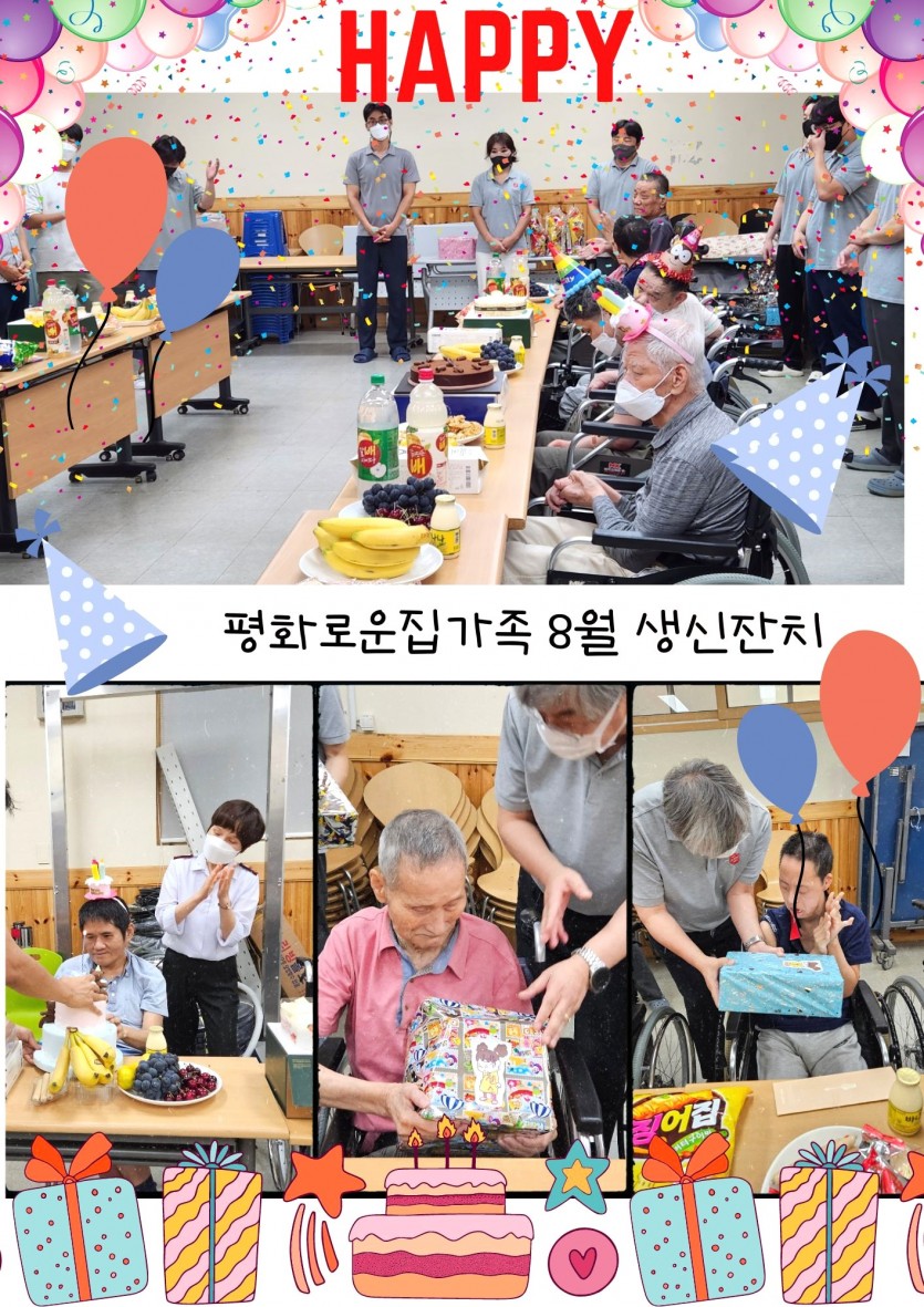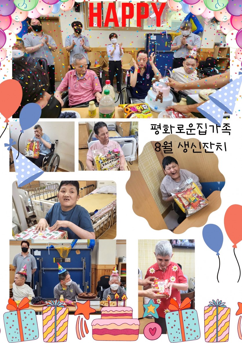 거주인 이야기 | 8월 생신잔치 페이지 정보 작성자 장설궁 작성일 23-08-08 15:39 조회 10,667회 댓글 0건 본문 평화로운집 가족의 8월 생일 잔치^^매년 돌아오는 날이지만항상 새로운 날이기도 하지요?연일 폭염이 지속되어 몸도 마음도 지치지만오늘만큼은 더 많이 웃고, 더 많이 행복하고, 더 많이 사랑받는 날되세요생일을 축하드리며 매일이 기쁨으로 가득 찬 행복한 날들이길 바랍니다. 이전글 다음글 목록