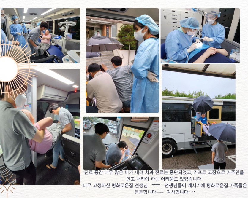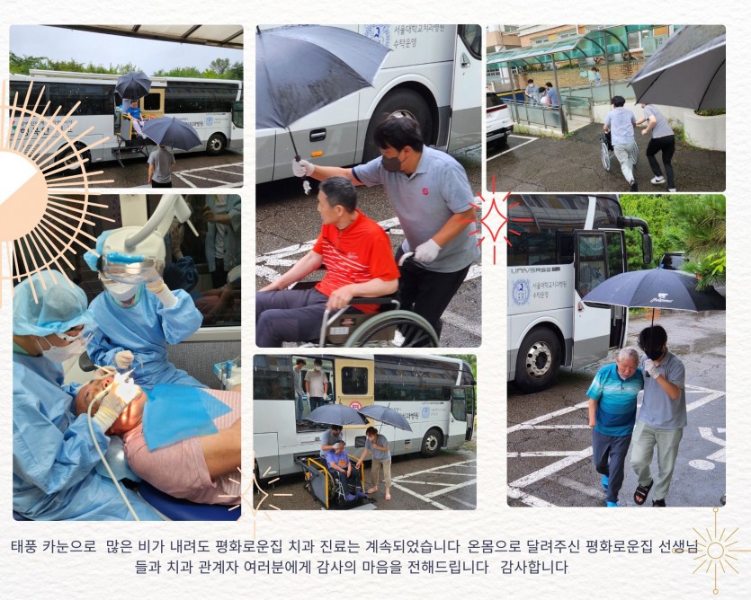 거주인 이야기 | 0810 2차 치과진료 페이지 정보 작성자 장설궁 작성일 23-08-10 17:53 조회 9,112회 댓글 1건 본문 태풍 카눈이 북상하며 많은 비가 내리는 가운데 장애인치과병원 2차 진료가 진행되었습니다. 의료진과 평화로운집 선생님들에게 다시 한번 감사의 마음을 전합니다."감사합니다" 태풍의 영향으로 강풍과 폭우가 예상된다고 합니다. 태풍으로 인한 피해 없도록 조심하세요무사히 태풍이 지나가기를 바랍니다. 댓글목록 조윤기님의 댓글 조윤기 작성일 23-08-18 19:26 비가 오는 가운데 모두 수고 많으셨습니다 비가 오는 가운데 모두 수고 많으셨습니다 이전글 다음글 목록