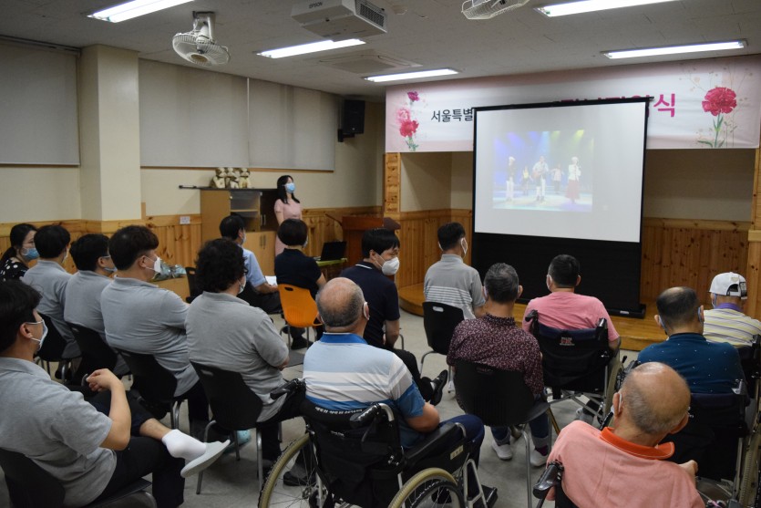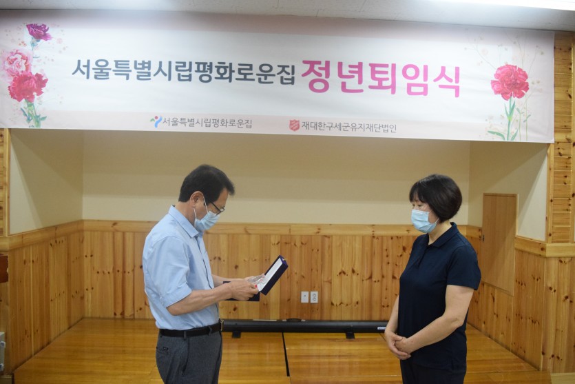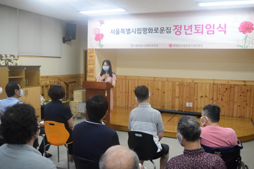 강당에서 진행된 이번 퇴임식에는 직원들뿐 아니라 거주인여러분께서도 함께 참석하였습니다.