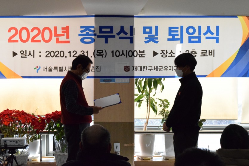 2020년 평화로운집 종무식 및 퇴임식이 12월31일 본원 2층 로비에서 진행되었습니다.