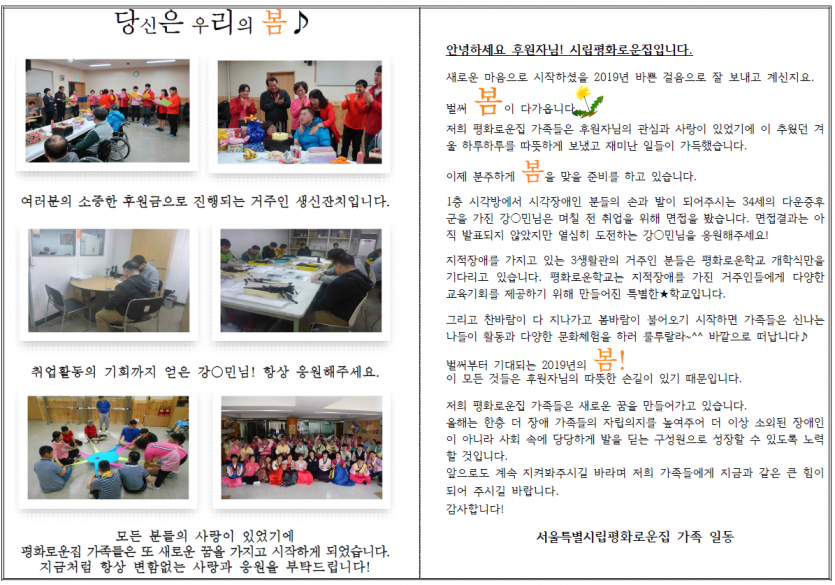 2019년 3월 후원자 감사편지 페이지 정보 작성자 박상은 작성일 20-09-11 11:30 조회 14,050회 댓글 0건 본문 늘 나눔으로 함께해주시는 후원자님께감사의 편지를 올립니다. 이전글 다음글 목록