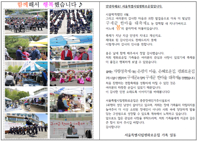 2019년 4월 후원자 감사편지_연합축제관련 페이지 정보 작성자 박상은 작성일 20-09-11 11:48 조회 13,649회 댓글 0건 본문 늘 나눔으로 함께해주시는 후원자님께감사의 편지를 올립니다. 이전글 다음글 목록