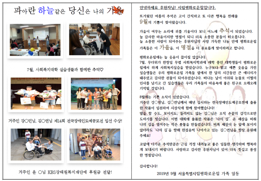 2019년 9월 후원자 감사편지 페이지 정보 작성자 박상은 작성일 20-09-11 11:52 조회 13,904회 댓글 0건 본문 늘 나눔으로 함께해주시는 후원자님께감사의 편지를 올립니다.첨부파일 열람 부탁드립니다♡ 이전글 다음글 목록