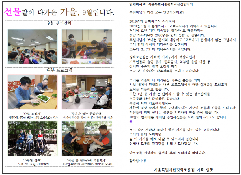 2020년 9월 후원자 감사편지 페이지 정보 작성자 박상은 작성일 20-09-11 15:57 조회 14,769회 댓글 0건 본문 2020년 9월, 아름다운 가을에 늘 나눔으로 함께해주시는 후원자님께감사의 편지를 올립니다. 이전글 다음글 목록