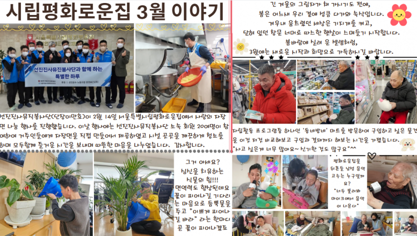 2025년 3월 시립평화로운집 후원감사편지 페이지 정보 작성자 장설궁 작성일 25-03-04 15:15 조회 4,674회 댓글 0건 본문 HELLOSPRING^^겨울의 추위를 견뎌낸 우리에게 희망과 설렘을 선물하는 3월꽃처럼 피어나는 행복을 가득 담아 보내드립니다. 이전글 다음글 목록