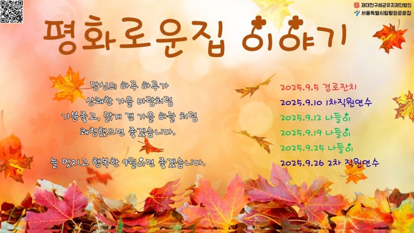 2025년 시립평화로운집 9월 후원감사편지 페이지 정보 작성자 장설궁 작성일 25-08-28 16:38 조회 2,424회 댓글 0건 본문 신선한 바람이 마음까지 맑게 해주는 9월입니다. 풍요로운계절행복과 여유가 가득한 한 달 되시길 바랍니다.9월 바람결에 행복을 보냅니다~~~ 이전글 다음글 목록